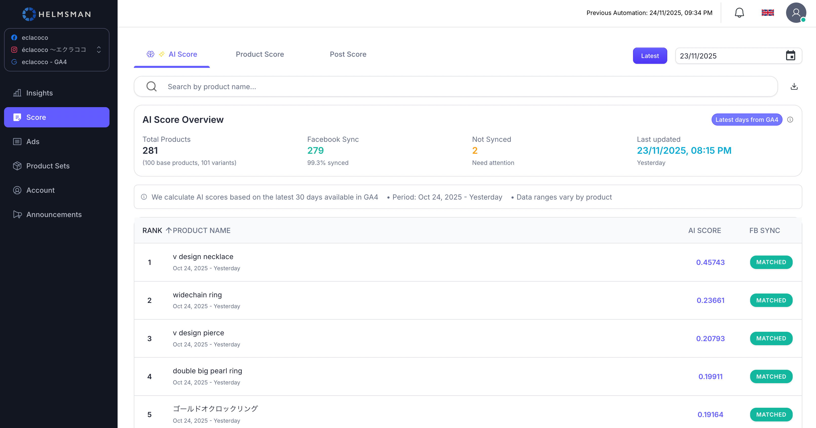InstagramとGoogle Analytics 4をつなぐ だけで、“今売れる商品”をAIがスコア化して自動広告配信